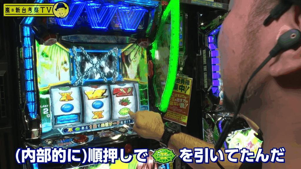 嵐さんの新台考察動画にて、決戦ボーナス中に順ハサミをしてしまいペナ打ちとなってしまっていました。